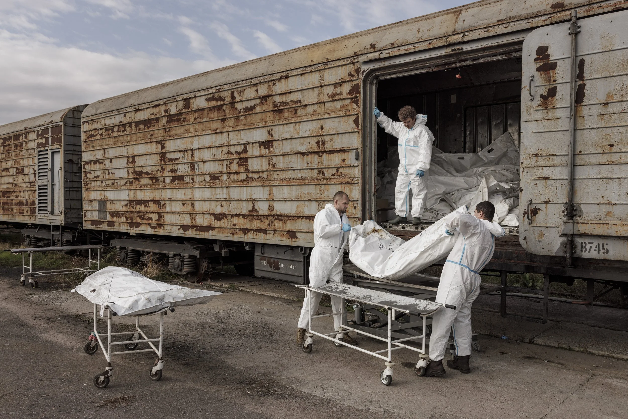 In an undisclosed site outside Odesa, a forensic team works to identify 2,228 fallen Ukrainian soldiers returned from the front. The bodies are kept in train wagons at minus 10 degrees.